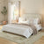 Bigger. bolder. better—the Ashland King Bed delivers it all. Upholstered in soft chenille fabric. this king floor bed frame layers cozy texture over a sturdy wooden frame built from solid pine and engineered wood. The rounded headboard doubles as an eye-catching focal point and a comfy spot to lean back with your favorite book or show. A low-profile floor bed design gives your space a modern. grounded look. while a center support bar. four central legs. and wooden slat roll keep your mattress supported night after night. Designed to anchor your space with equal parts style and comfort. this upholstered king bed is the statement piece every bedroom needs.