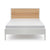 Reimagine your space with our Duo Queen-Size Bed. Inspired by the minimalism of Danish design. this queen bed frame combines a sleek. streamlined silhouette with a beautiful white and birch wood finish. Knot-free pine and solid birch wood construction provides superior strength and durability. This wooden bed frame is also GREENGUARD Gold Certified with a clean finish. contributing to a healthy sleeping space. Strong wooden slats and a metal support bar create a high 1000 lb resting weight capacity. Designed to fit a queen size mattress. this bed frame can accommodate most mattress types including memory foam. spring. hybrid. or latex without a box spring or Bunkie board. Flush. color-matched hardware and a beautiful two-tone white and birch wood finish create a clean. modern look that compliments any home's decor. Create a stylish space for sleep with this sleek. contemporary design.