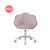 The Dominique is a cute. scalloped-shaped kids vanity chair with plush pink seating and smooth rolling wheels. designed to make every little glam moment feel extra special.