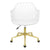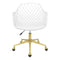 The Robin Chair embraces classic. mid-century modern style with the criss-cross plastic shell design. Crafted with a one-piece molded plastic chair seat and back featuring a unique lattice cutout pattern and brushed gold fixtures. With its 5 wheel base. the Robin chair is perhaps the most practical and durable seat you'll ever sit upon. The waterproof and easy to clean design of thick plastic seat. makes it perfect for glam spaces avoiding makeup disasters. The simple clean design fits in with any decor theme.