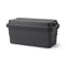 A sturdy storage box made from heavy duty polypropylene that can be used both indoors and outdoors. The bottom features a grid pattern that provides more traction so it does not slip even when stacked. and the lid is designed flat and can be used as a table or seat.