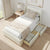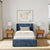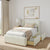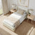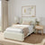 Our Modern Upholstered Twin Bed makes a stylish and cozy addition to any bedroom or guest room. With a padded headboard upholstered with soft chenille fabric. this upholstered twin bed frame is the perfect place to lean back and read a book or to get a good night's sleep. Plus. with optional storage drawers that fit on either side of the bed. this twin bed frame with headboard easily accommodates your space and storage needs. The frame is crafted with a sturdy combination of knot-free. solid pine wood and engineered wood for a durable design that's built to last. This upholstered platform bed is made with clean. low-VOC materials. creating a healthy sleeping space. This fabric bed frame includes sturdy wooden slats. eliminating the need for a box spring. With its easy-to-clean cream upholstery and timeless design. our upholstered bed frame with headboard fits right in with any décor style.