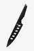 The Shadow Black 7 chef knife sets itself apart from the 6 and 8 versions by having holes along the blade length for reducing friction. Sliced foods fall clean away from the blade instead of sticking to it. Designed from the ground up to be as sleek. aggressive and muscular looking as it is effective. the Shadow Black Series is sure to deliver the highest levels of satisfaction during your culinary journey. Striking from every angle. the unique handle geometry (inspired by the F-117 Nighthawk Stealth Fighter) features sharp. aerodynamic lines that cut the air and tuck snugly into your palm. A midnight black titanium coating creates unforgettable styling. sophistication and functionality. sure to turn heads in any kitchen. This is one evil looking knife.