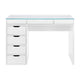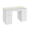 The crystal clear tabletop now includes a built-in LED strip light that illuminates your makeup and jewelry with flair. Plus. with built-in outlets and USB ports. powering up your hair tools and personal devices has never been easier.