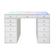The crystal clear tabletop now includes a built-in RGB strip light that illuminates your makeup and jewelry with flair. Plus. with built-in outlets and USB ports. powering up your hair tools and personal devices has never been easier.