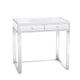 Featuring a flawless clear glass top and a spacious pullout drawer with diamond-style knobs. the SlayStation® Mini Vanity Table is perfect for showcasing your vanity accessories. Its mini size allows this vanity table to fit in most places!
