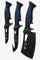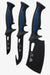 The Night Shark 3 Piece knife set includes everything you need to skin. clean. bone. and slice your prey: gut hook knife. boning knife. and mini rocking cleaver for all your hunting and cooking needs. Each one comes with a sheath that can strap to a rucksack or belt.