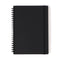 A lined notebook with high quality recycled paper that does not bleed through easily. and a sturdy paperboard cover. The double rings allow you to fully open the notebook and write from any direction. and the strap keeps the notebook closed for on-the-go usage.
